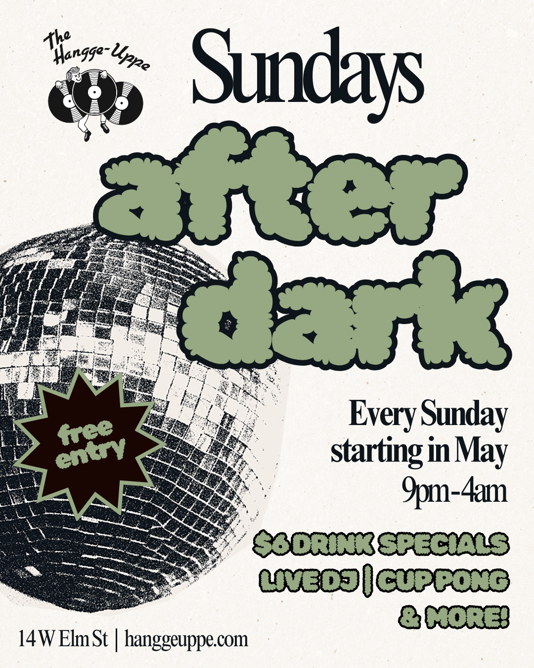 Starting May 3, The Hangge-Uppe is open every Sunday from 9pm to 4am giving you one more night to keep the weekend going. Enjoy $6 drink specials, a live DJ, cup pong, and more all night long. Best of all, there’s free cover—just show up and close out your weekend the right way.